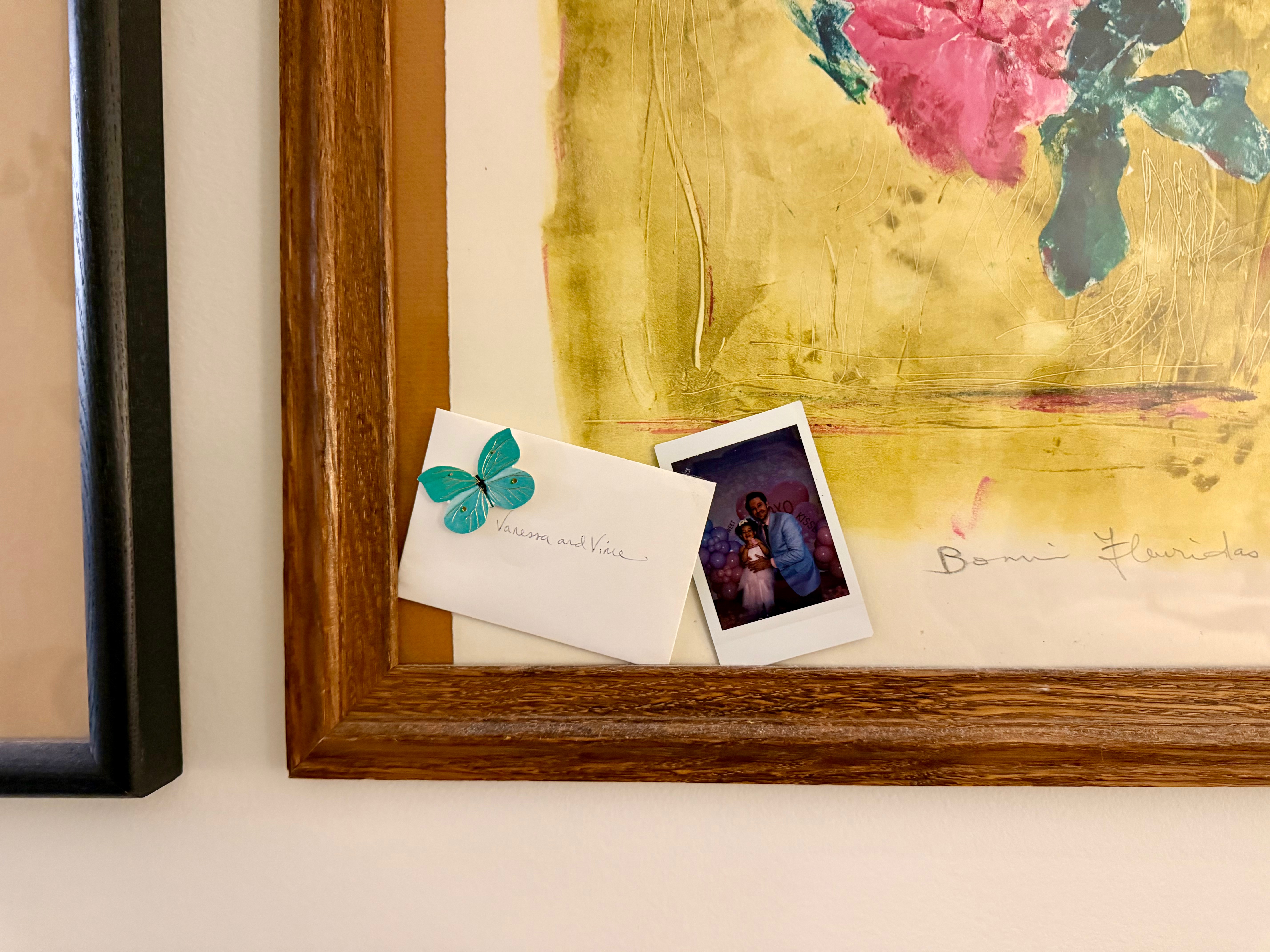 A polaroid from Vince and Elaine’s first daddy daughter dance, and a tiny envelope with “Vanessa and Vince” written on it and a cute little butterfly