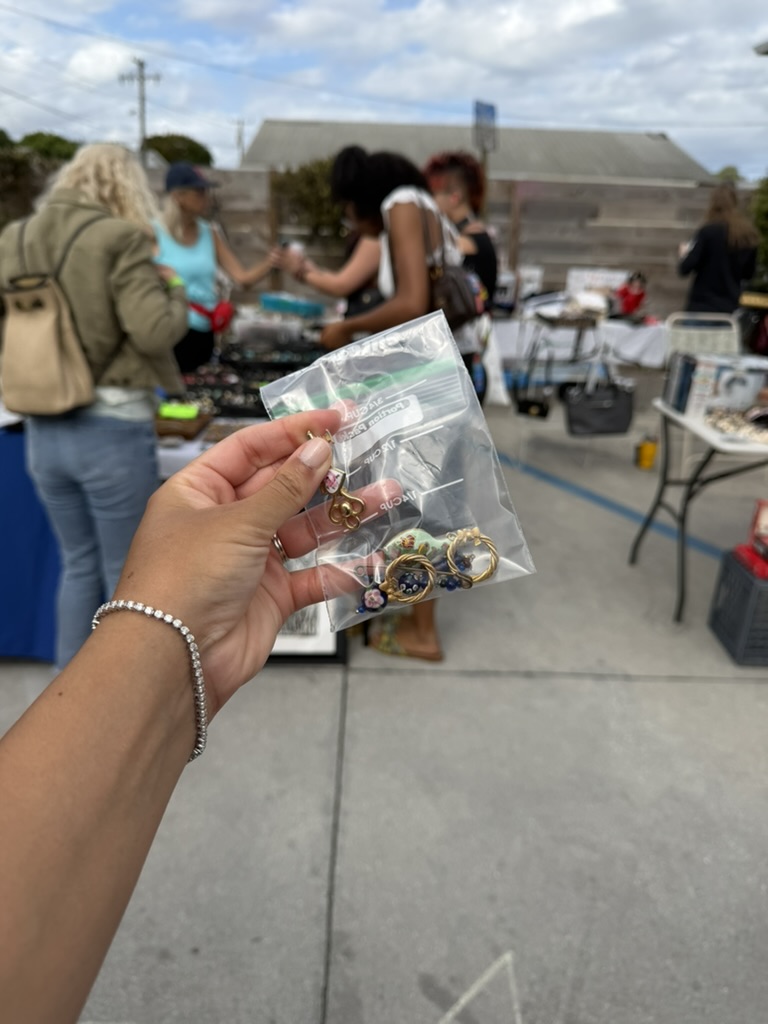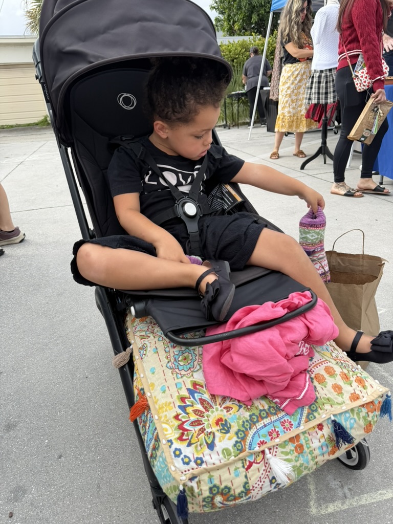 Anthropologie bag from Goodwill West Palm Beach, Earrings from Stone Button StudioTop and MANGO tote bag from Goodwill West Palm BeachSunnies from Goodwill West Palm BeachDate night purse from Goodwill West Palm BeachKaftan/Swim Cover from Goodwill West Palm BeachBaby’s sweet dress from Goodwill West Palm Beach