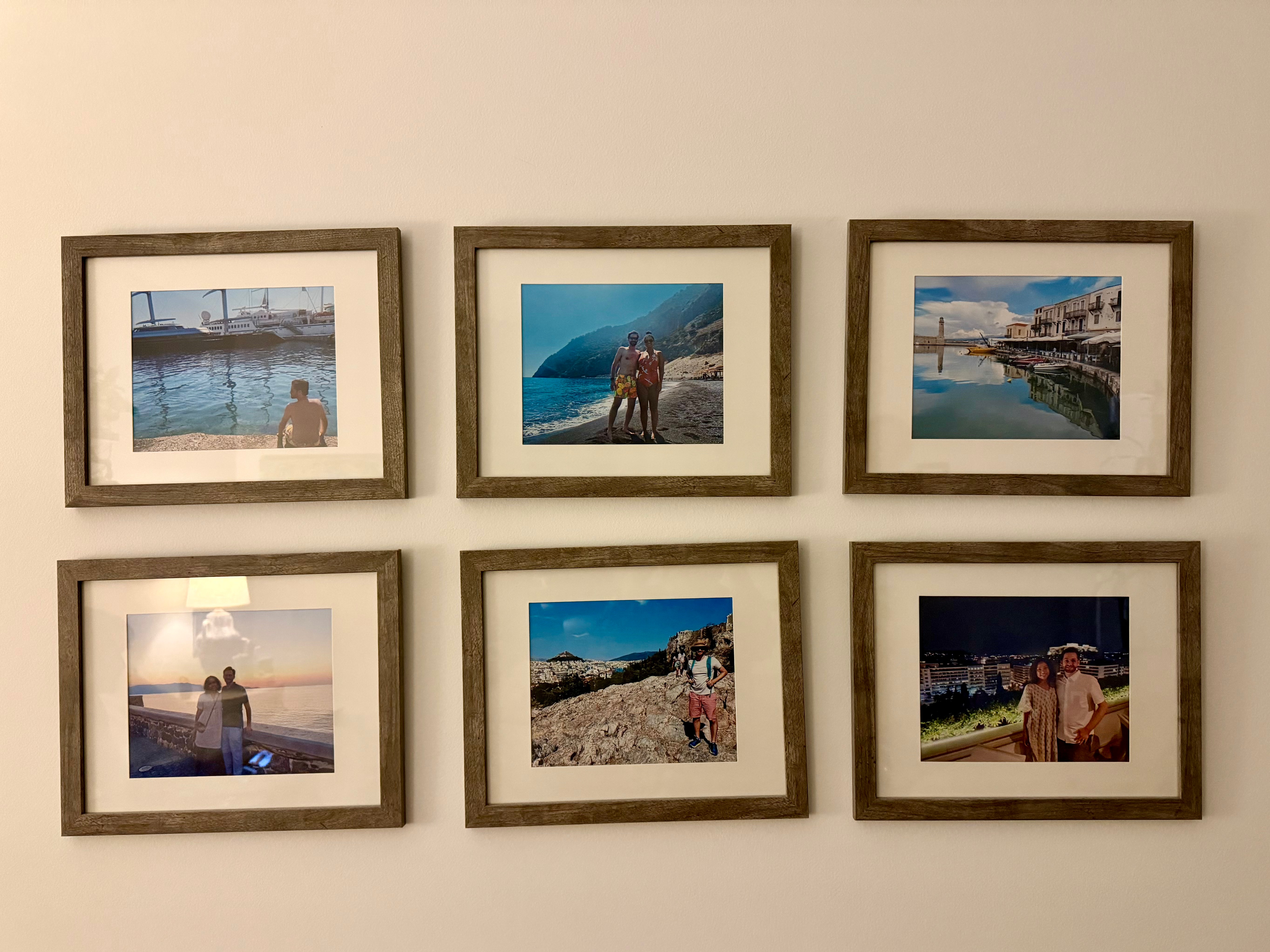 A traditional gallery wall in our home featuring images from our favorite vacation.