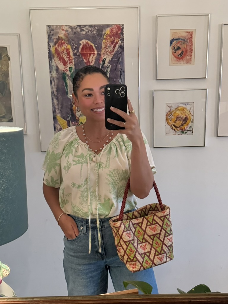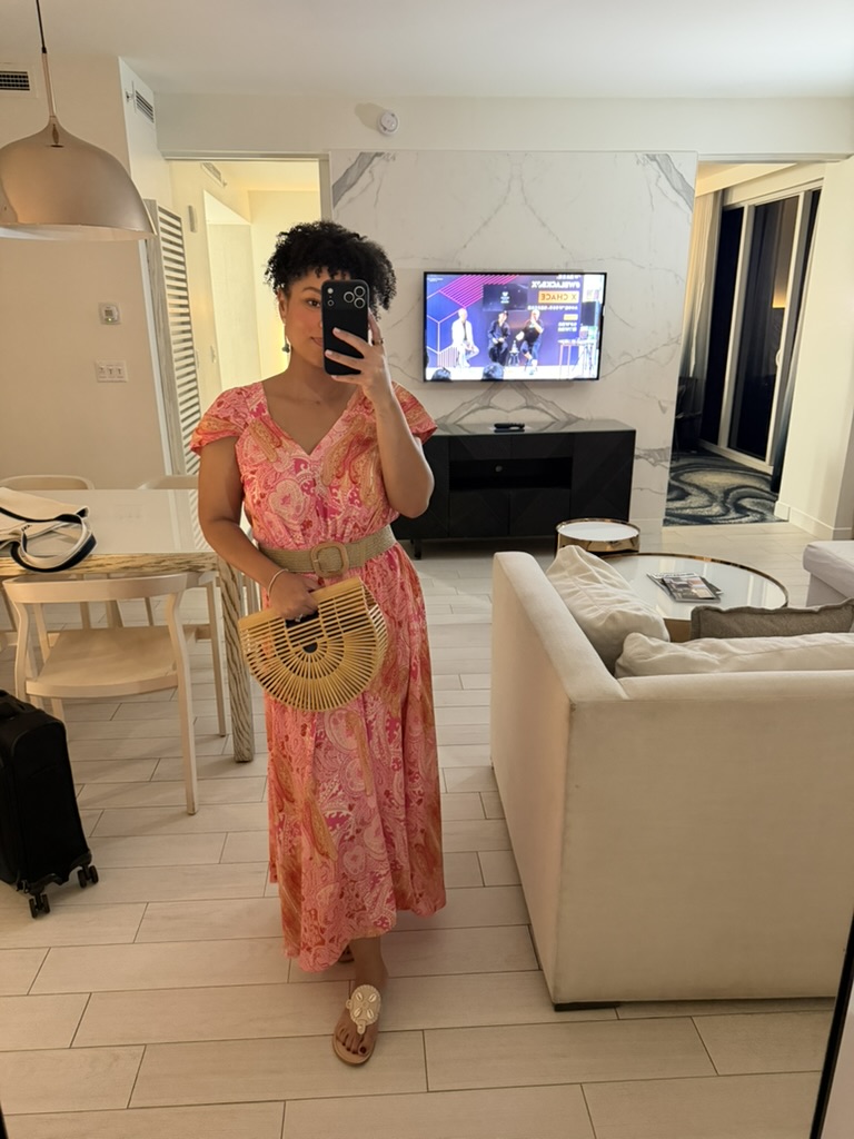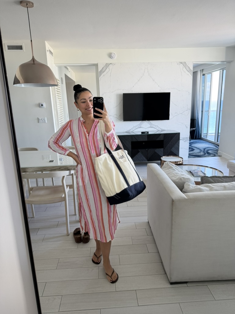 Zara top from Goodwill West Palm BeachHouse of Harlow dress from Goodwill West Palm BeachGorgeous necklace made of thrifted fabric, charms, and shells by Sarah Bray Bermuda Dooney & Bourke bag from Goodwill West Palm BeachBaby girl’s Christmas eve dress from Goodwill West Palm BeachMy Christmas day sweater and linen slip dress from Goodwill West Palm BeachVintage, secondhand Lilly Pulitzer caftan purchased at a nonprofit event Baby girl’s Lilly Pulitzer romper from Goodwill West Palm BeachWoven bag thrifted and gifted from a friend!Sweater layered over a white sun dress – both from Goodwill West Palm Beach; Necklace made of thrifted materials by Sarah Bray Bermuda; Ring from A Timeless Treasure in Northwood VillageSam Edelman sandals from Goodwill West Palm BeachSunglasses from Goodwill West Palm Beach; Top from Nearly New Shop West Palm BeachCan you believe my mom found this bag brand new at Goodwill?! She gifted it to me for Christmas.