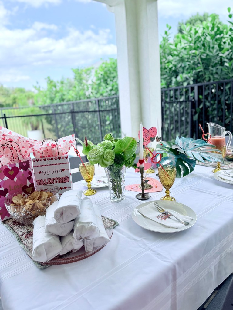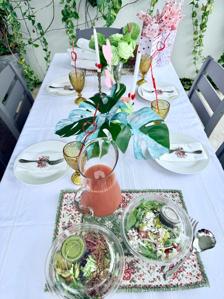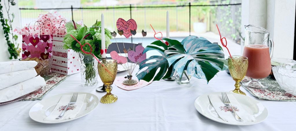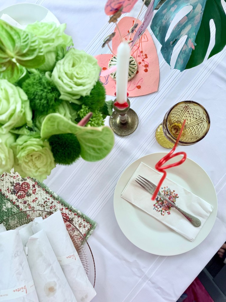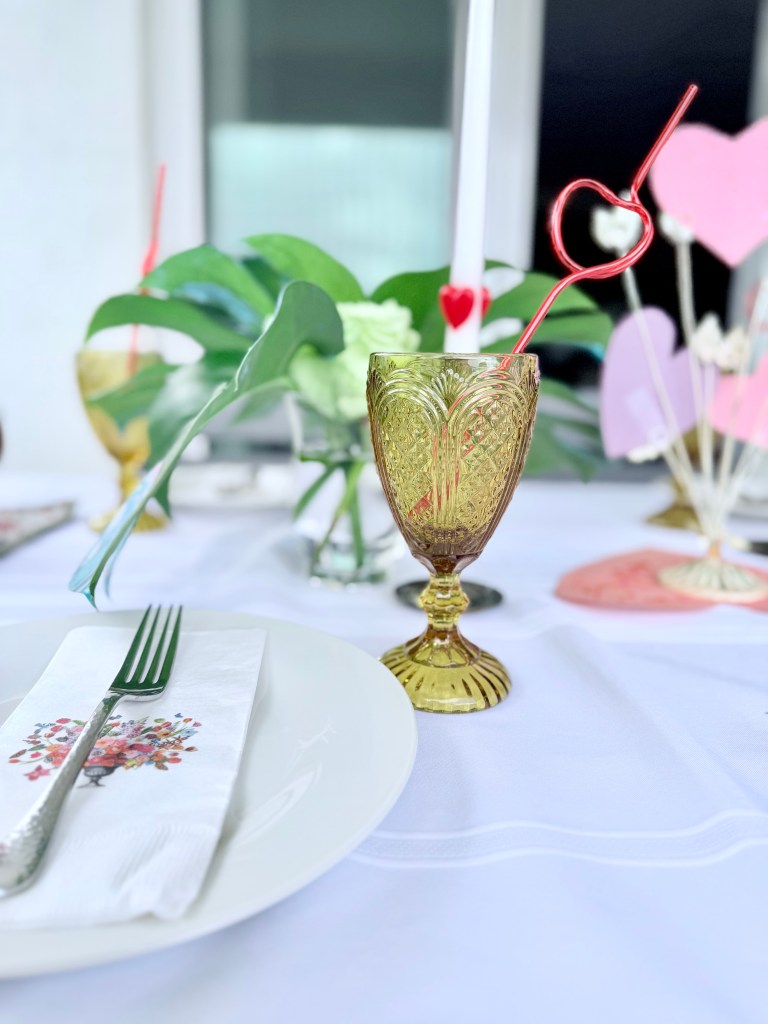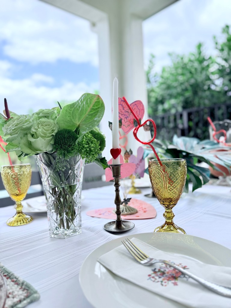So I pulled together a little V-Day lunch for the family and naturally filled the table with thrifted finds, which I’m happy to tell you all about: