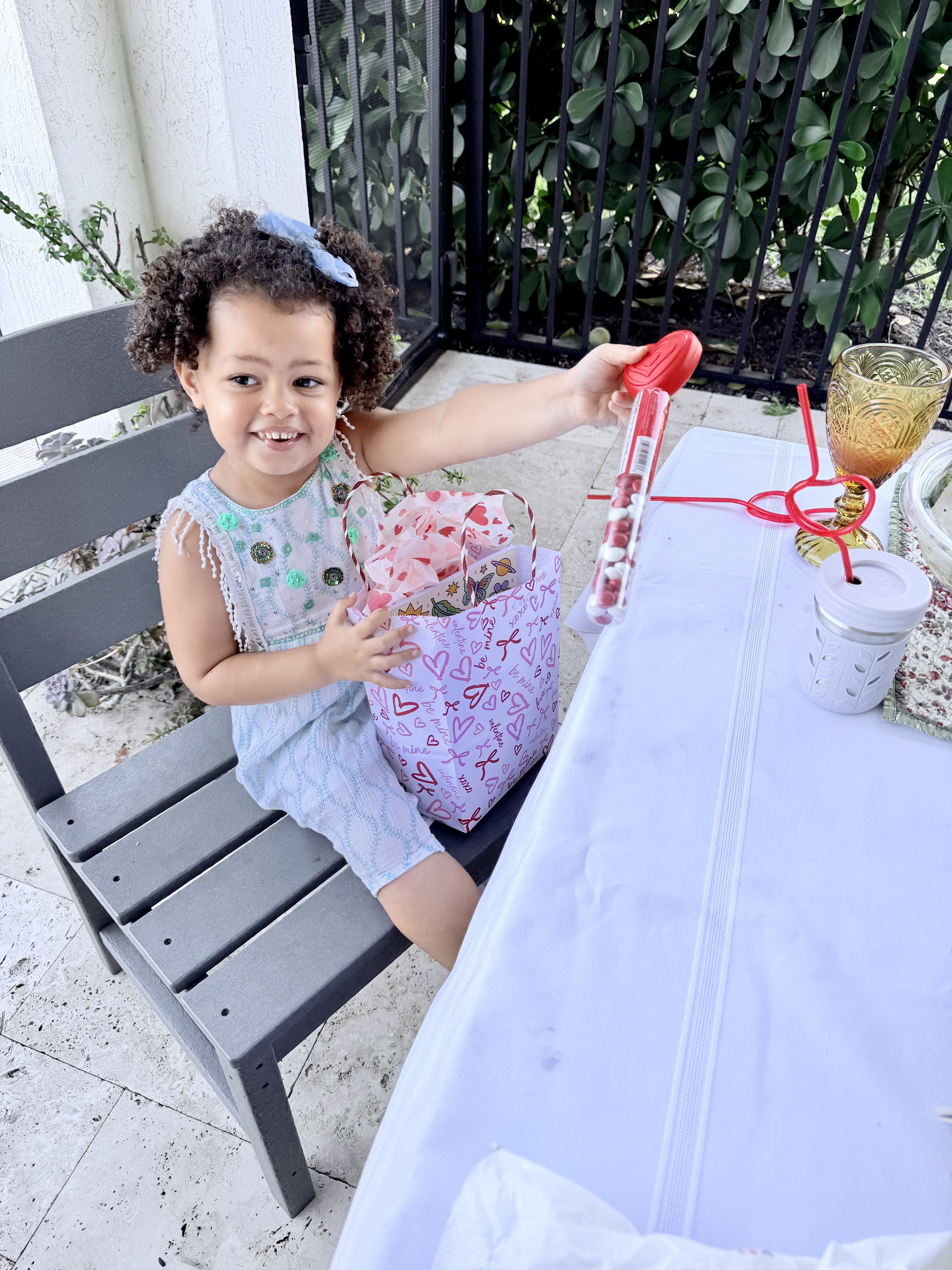 The heart straws and gift bags are from the dollar store! I love shopping there for holiday themed items.