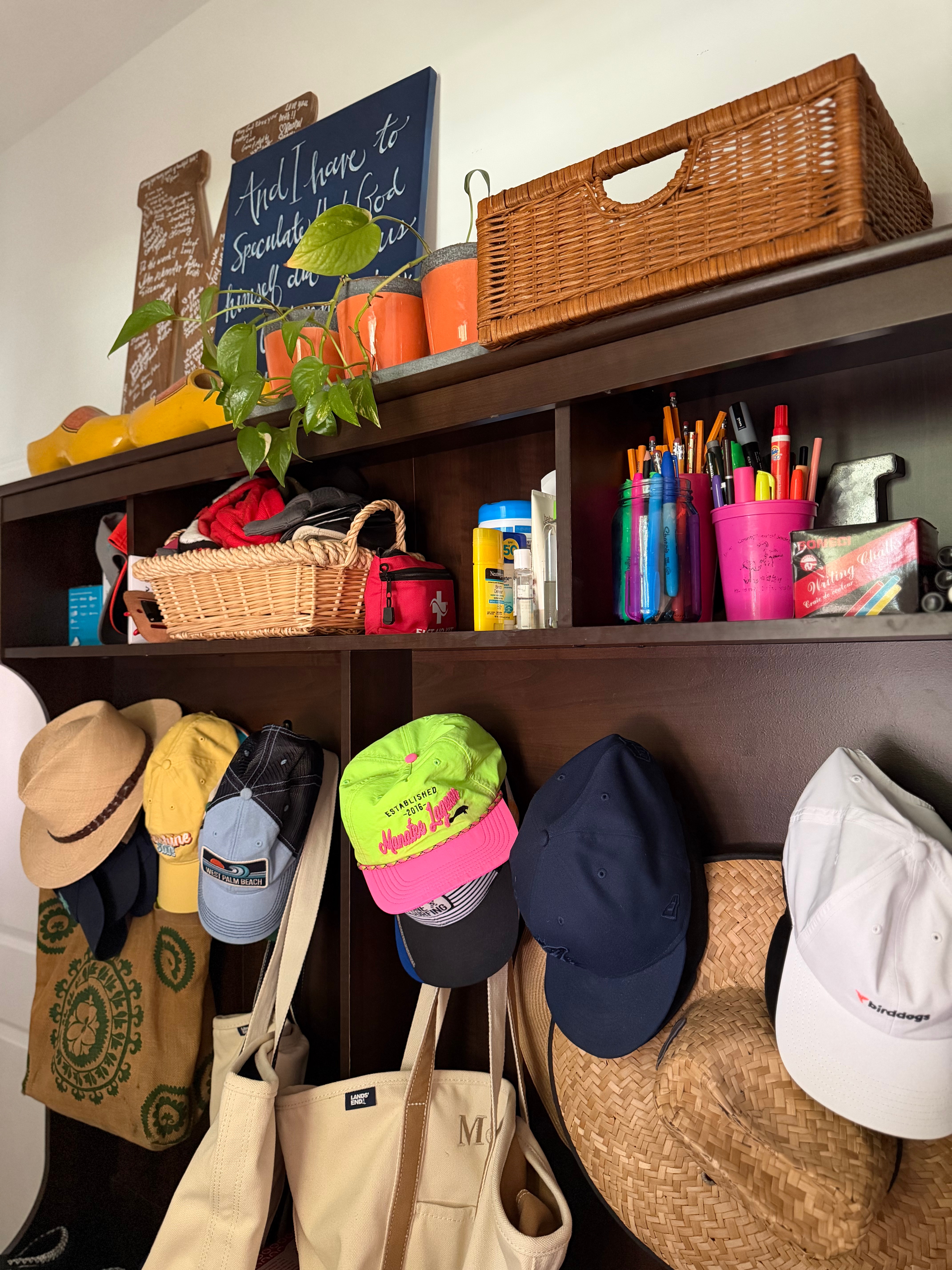 He’s really into baseball caps, so we have a plethora. He buys them everywhere we go.