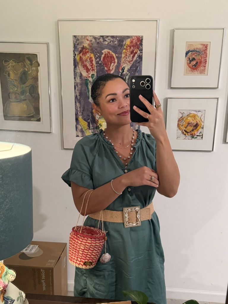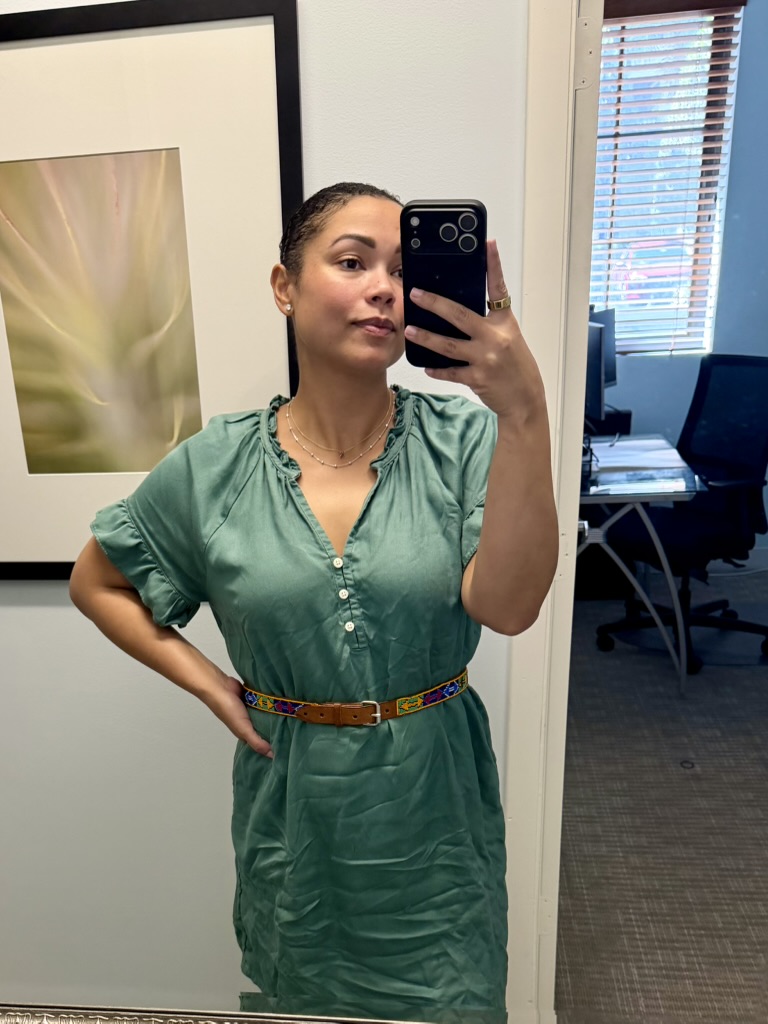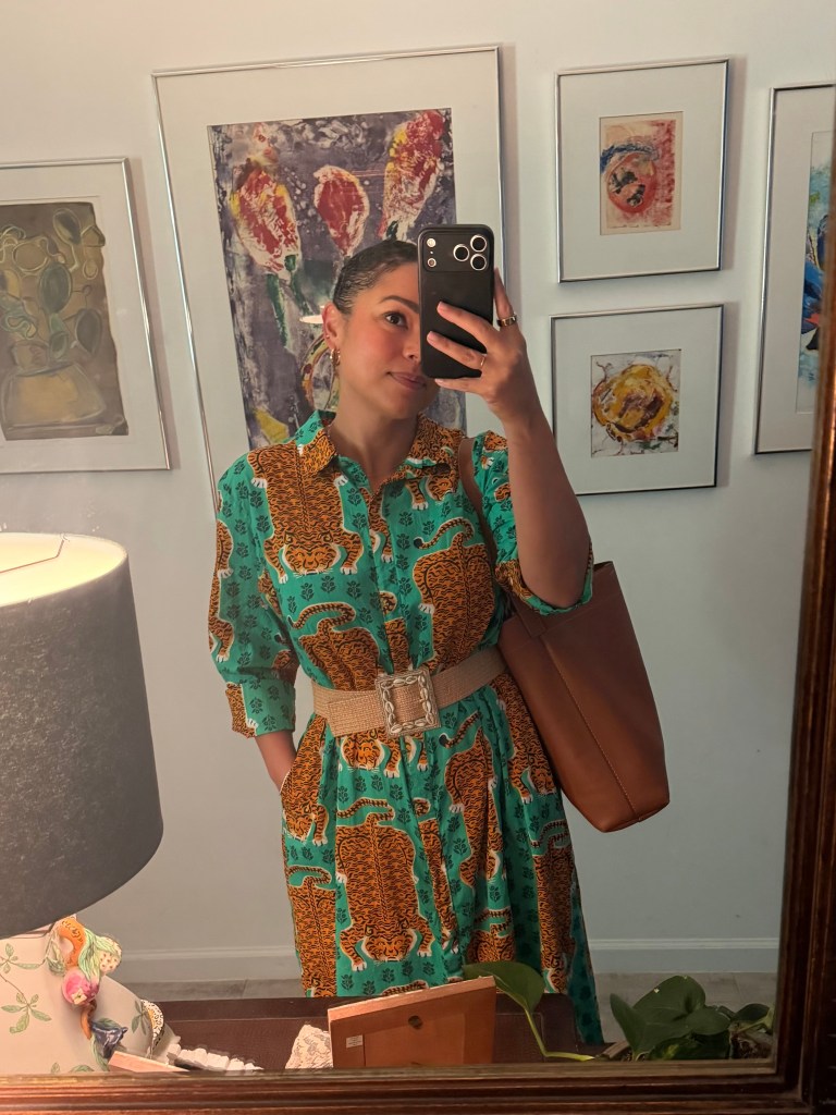 Land’s End Dress from Goodwill West Palm Beach, Beaded Leather Belt from Trashe Vintage