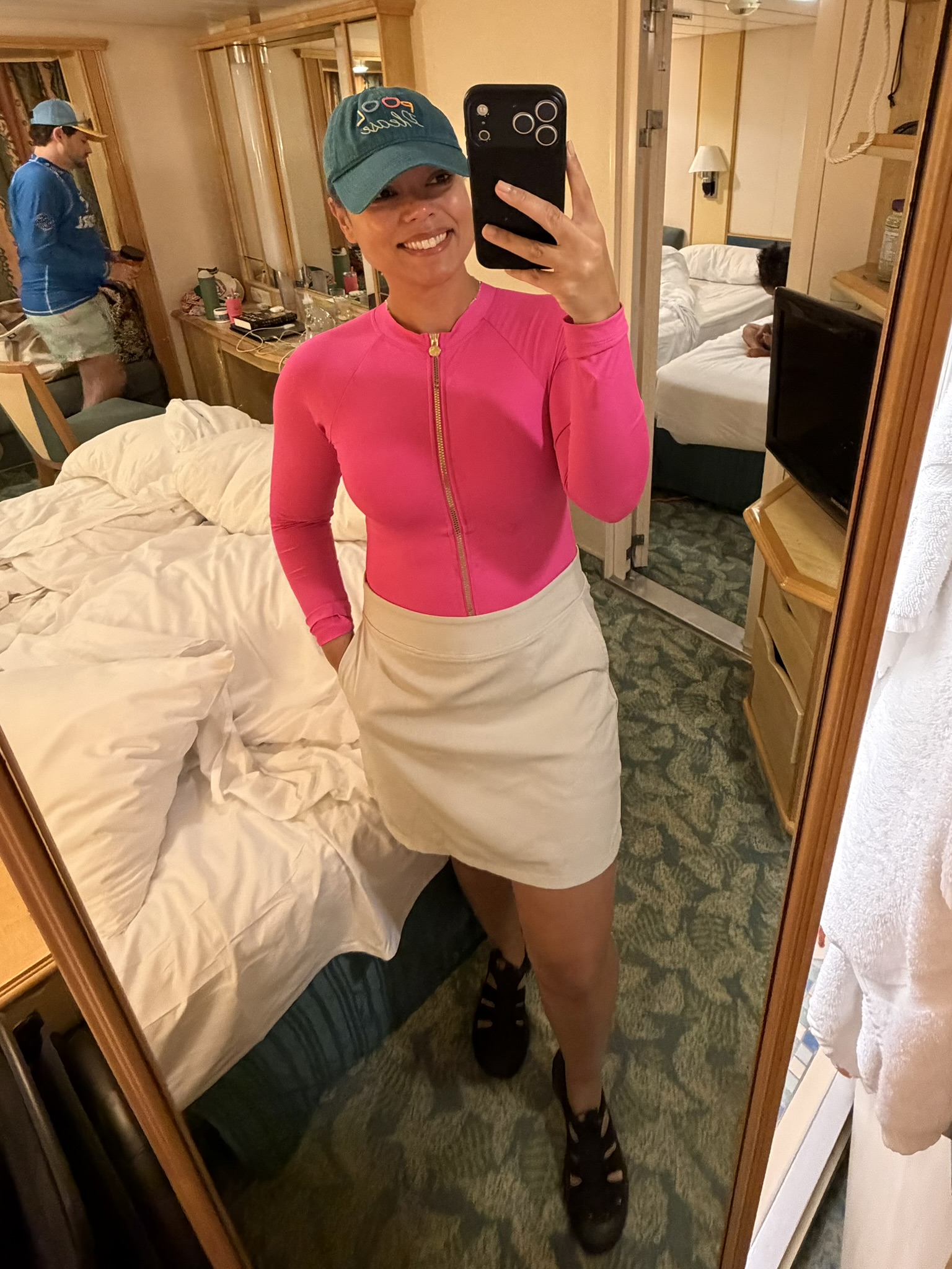 On Day Four, we visited Jamaica and I wore a Lilly Pulitzer swimsuit and a skort from Costco
