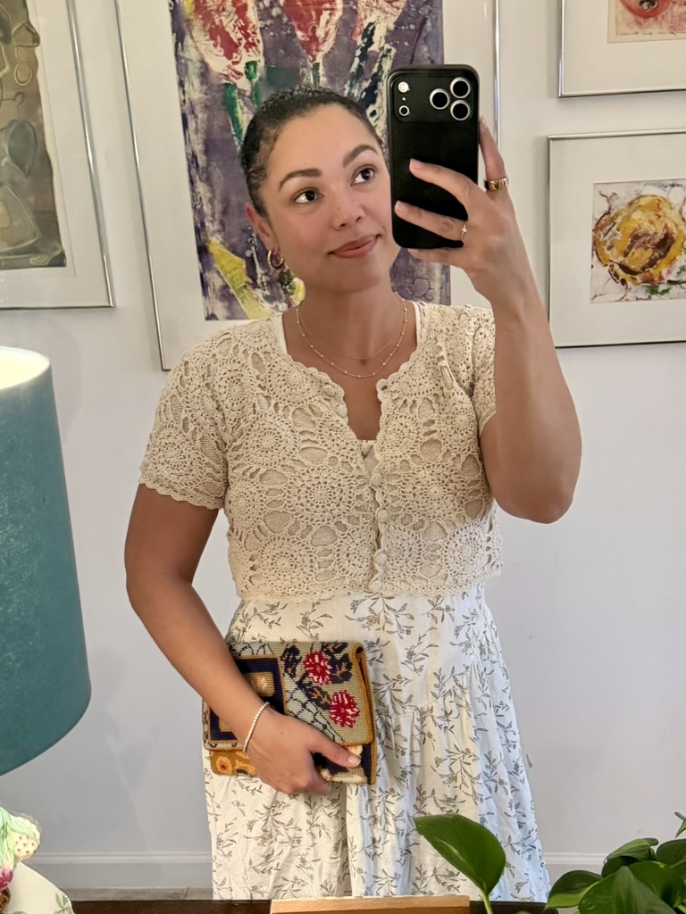 Sweater from Goodwill Denver, Dress from Goodwill West Palm Beach, Bag from Stone Button Studio