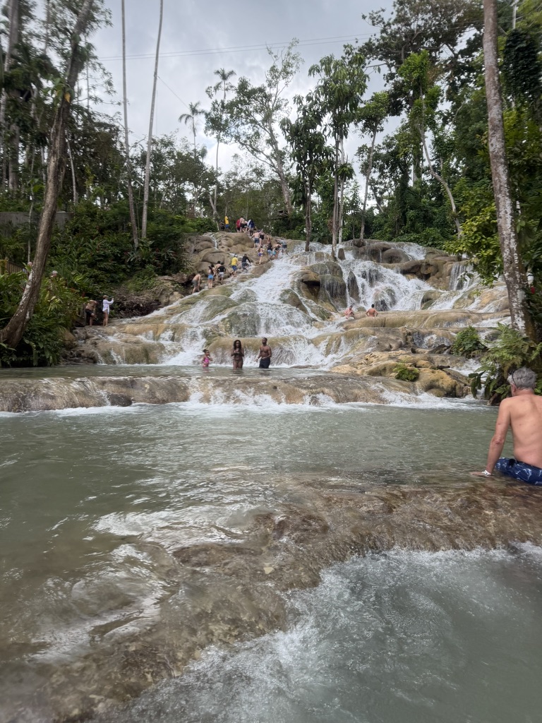 Vince’s deep dives on reddit and chatgpt prepare us to create our own experiences on any island we visit. In Jamaica, we promptly left the port via taxi for an hour and 20 min drive to Dunns River Falls.