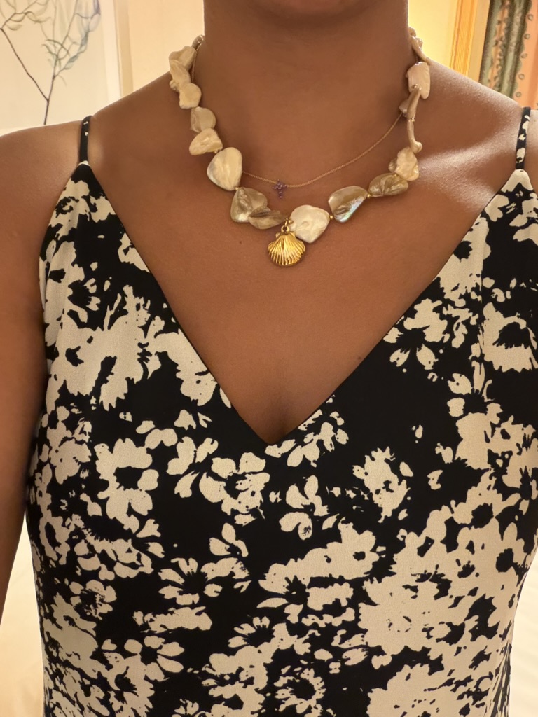 Shell necklace souvenir purchased at the Cozumel beach club gift shop
