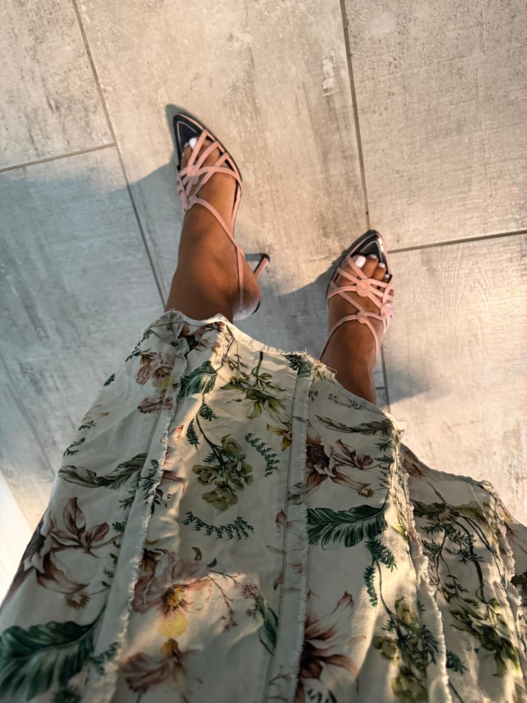 Strappy heels thrifted from a local nonprofit showroom