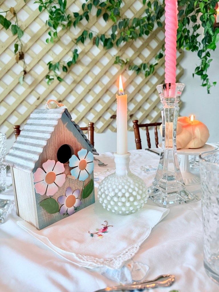 I hosted an Easter lunch for my family and friends and naturally covered my dining table in thrifted springtime goodness.