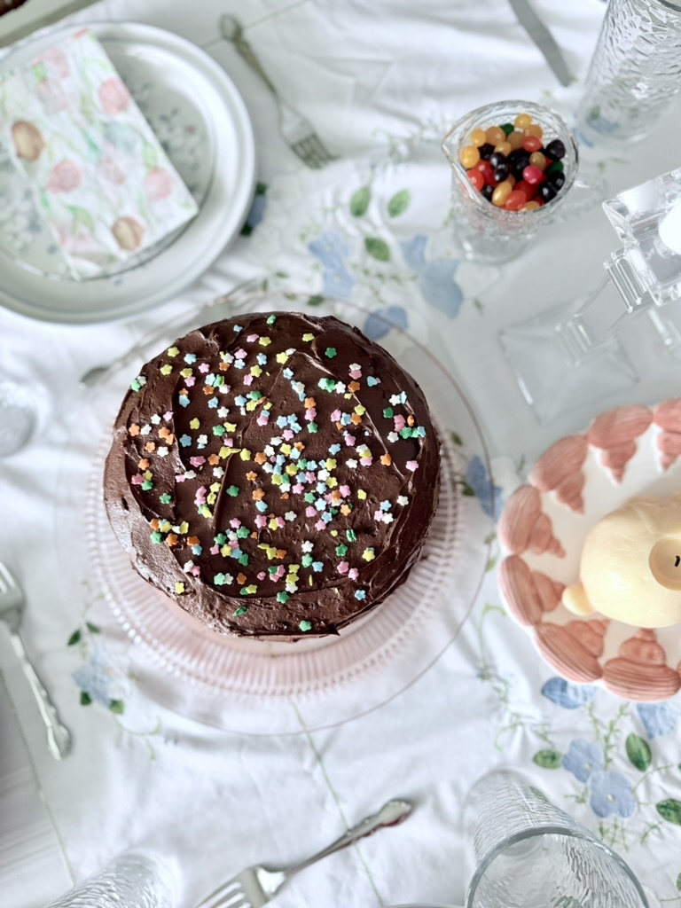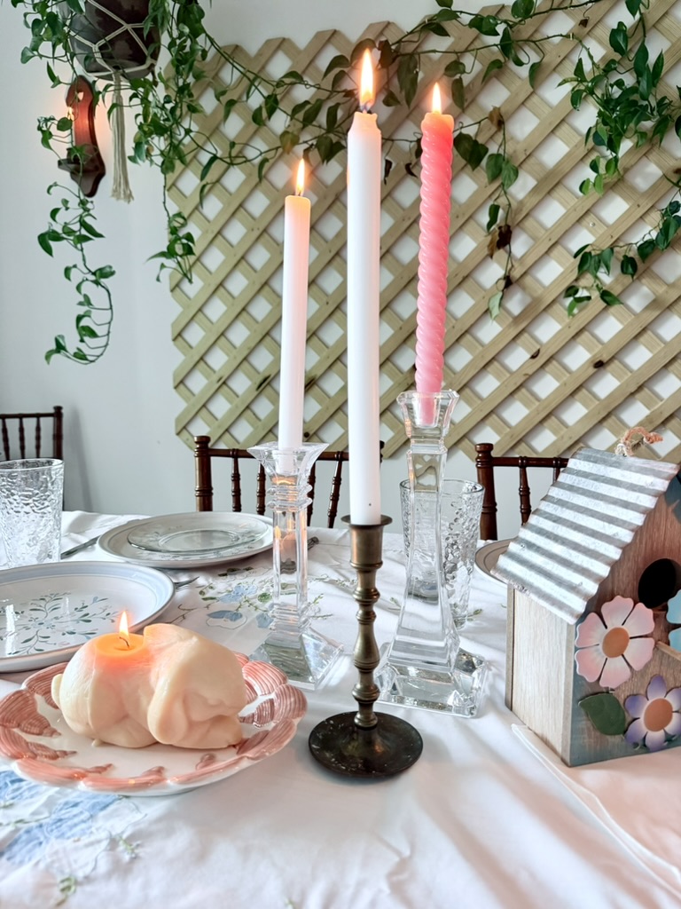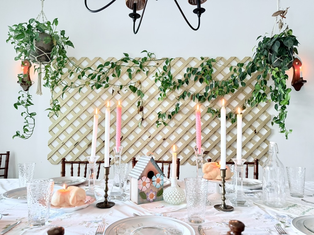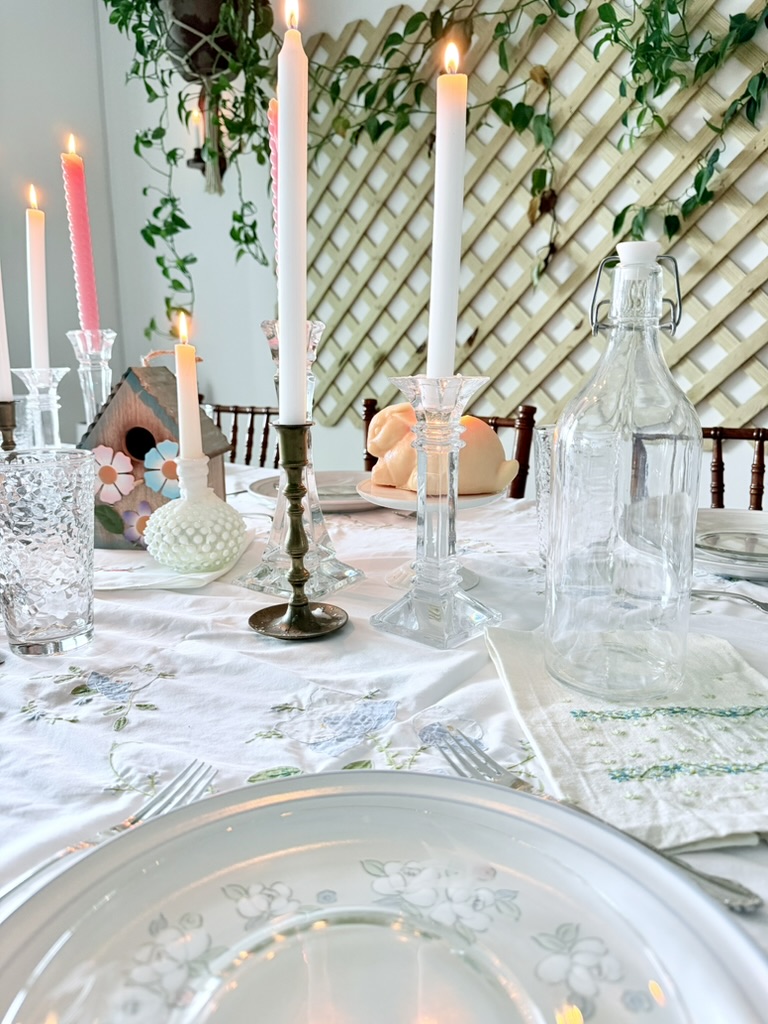 I hosted an Easter lunch for my family and friends and naturally covered my dining table in thrifted springtime goodness.