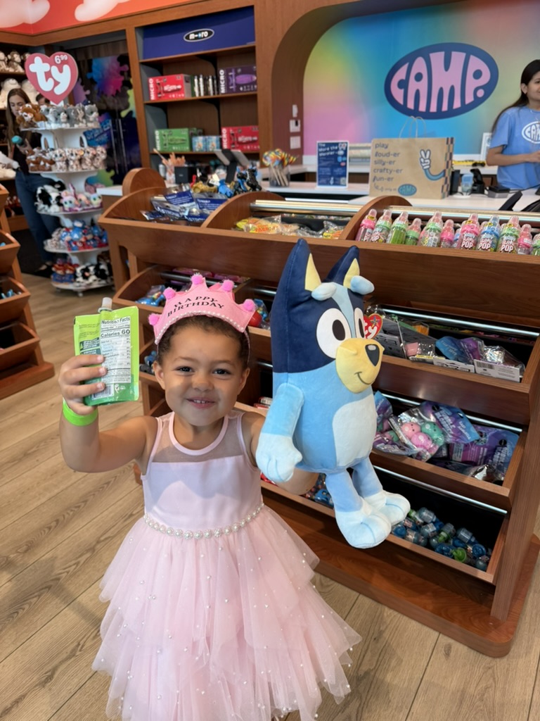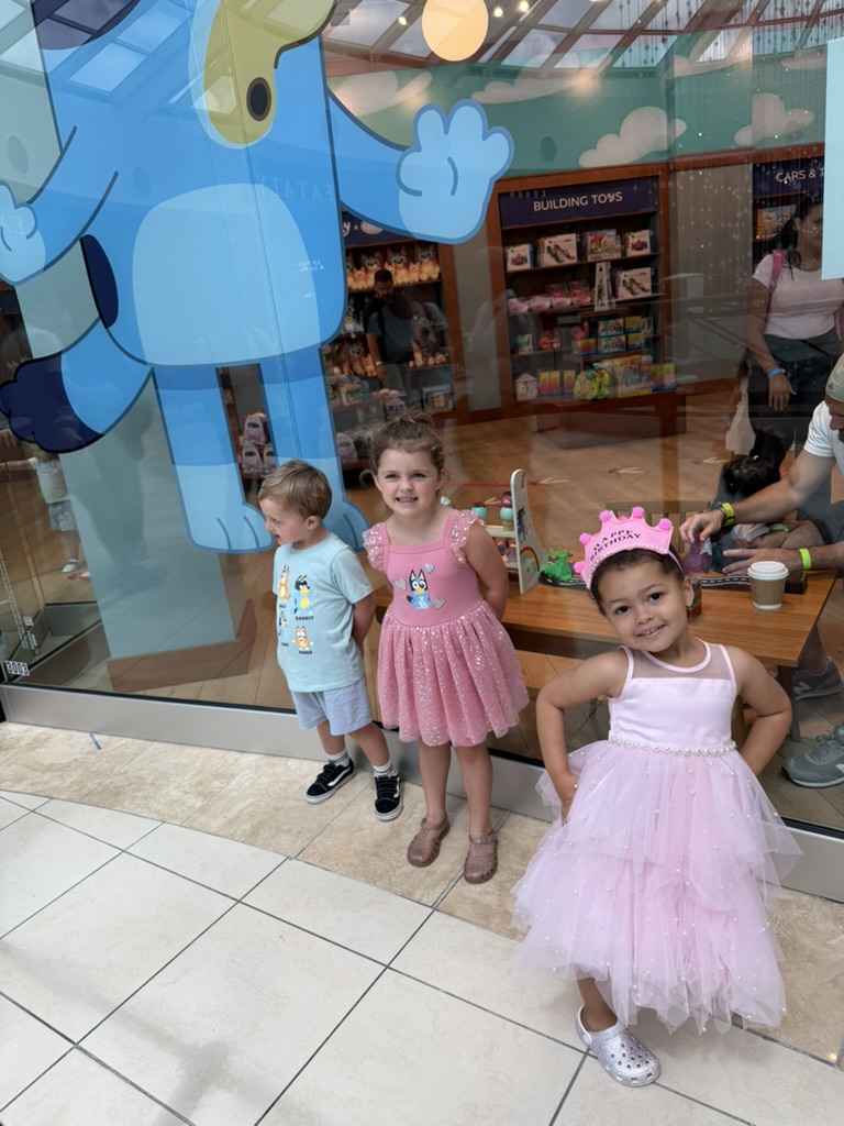 To celebrate Elaine’s brithday, we took the Brightline to the Aventura Mall with her besties / our neighbors to visit Bluey’s Backyard.