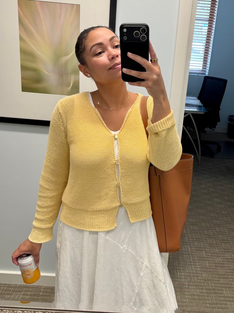 Sweater, Maxi Dress, and Tote from Goodwill West Palm Beach