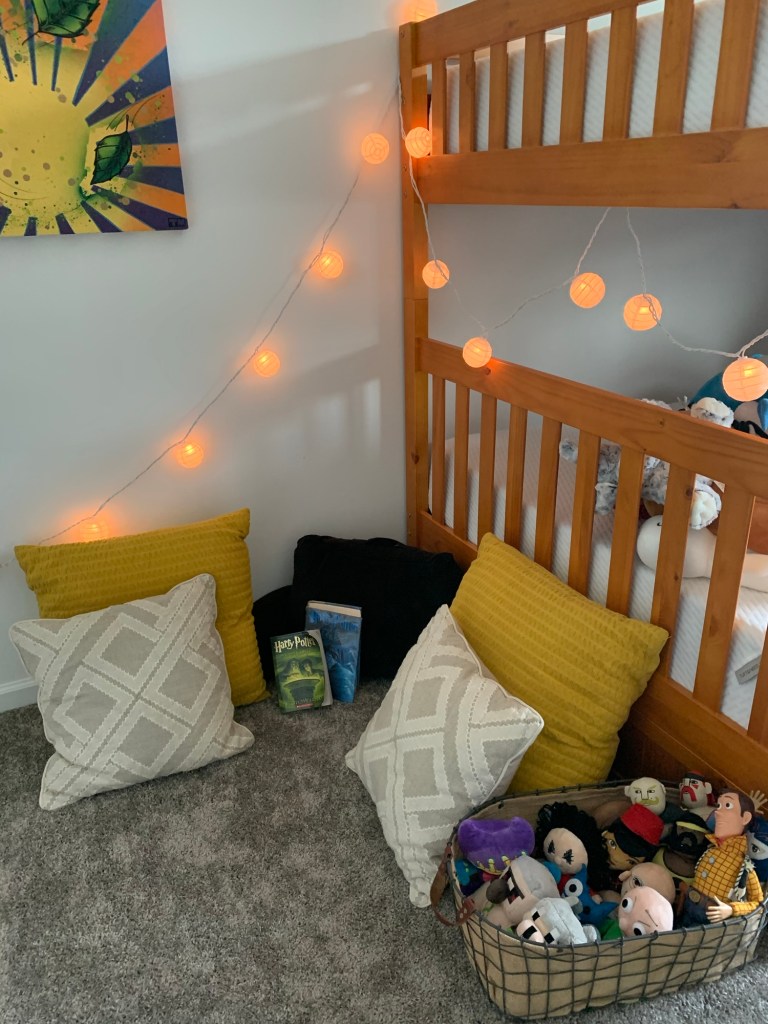 When my boys were younger, I put so much effort into making their room special and cute. It had a foosball table, reading nook, glowy string lighting, bunk beds…a dream.